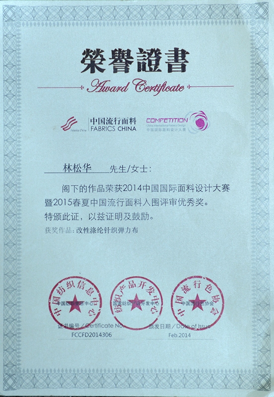 國際面料設(shè)計大賽優(yōu)秀獎